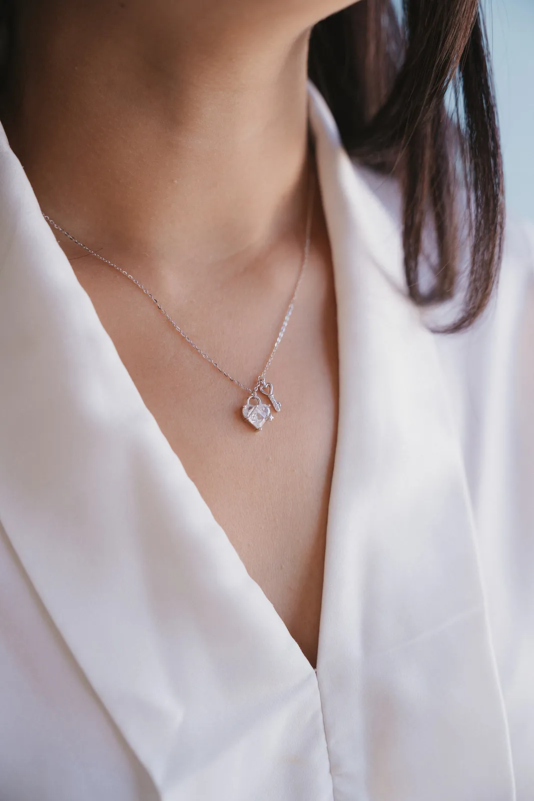 Este collar guarda una intención poderosa: abrirte al amor que estás destinada a encontrar. La llave y el corazón juntos simbolizan ese llamado silencioso que hacemos cuando estamos listas para recibir a alguien que llegue con verdad, cuidado y reciprocidad.